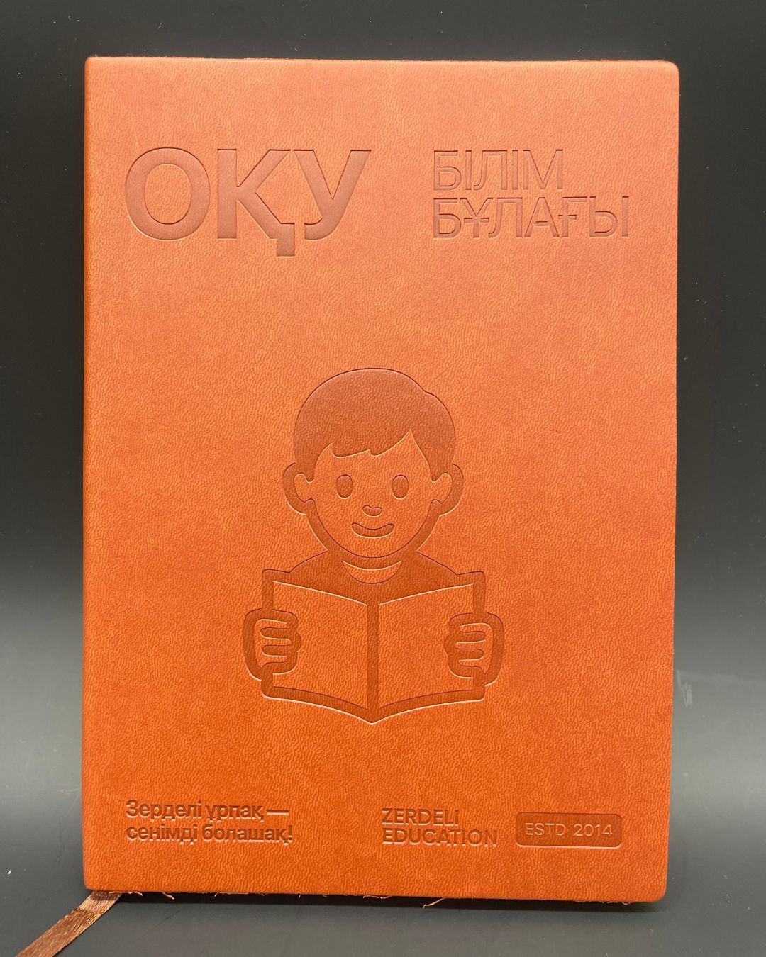 Фирменный блокнот Zerdeli Education с мотивационной надписью «Оқу — білім бұлағы» («Учение — источник знаний»). Выполнен в голубой обложке с тиснением и рисунком ученика с книгой. Твёрдый переплёт и закладка-лента делают блокнот практичным и удобным для школы, университета и повседневного использования.Zerdeli Education фирмалық дәптері «Оқу — білім бұлағы» деген ұранымен жасалған. Мұқабасы көк түсті, үстінде…